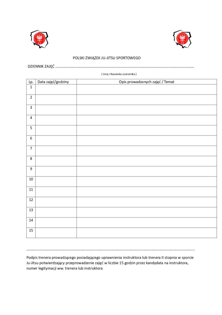 Po ukończonej części specjalistycznej należy przedłożyć uzupełniony Dziennik zajęć, potwierdzony przez uprawnionego instruktora lub trenera II klasy.